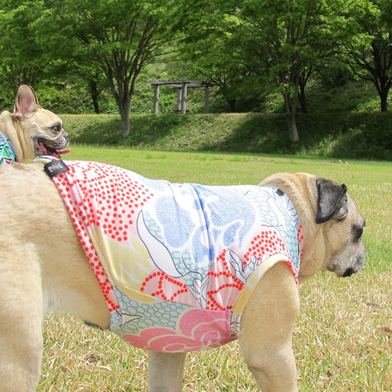 下記目安サイズとモデル犬サイズ・着用画像をご参考ください。