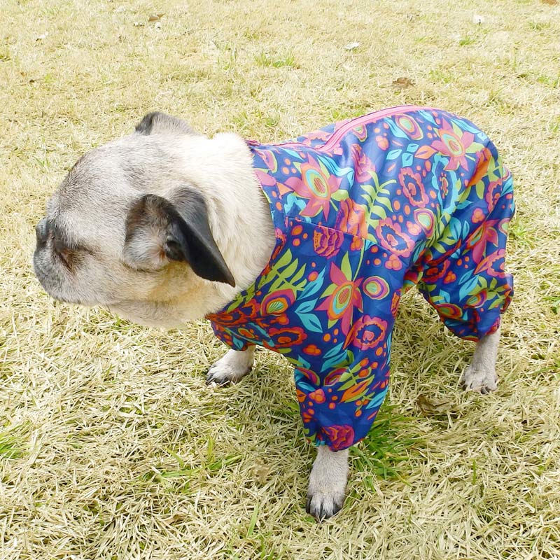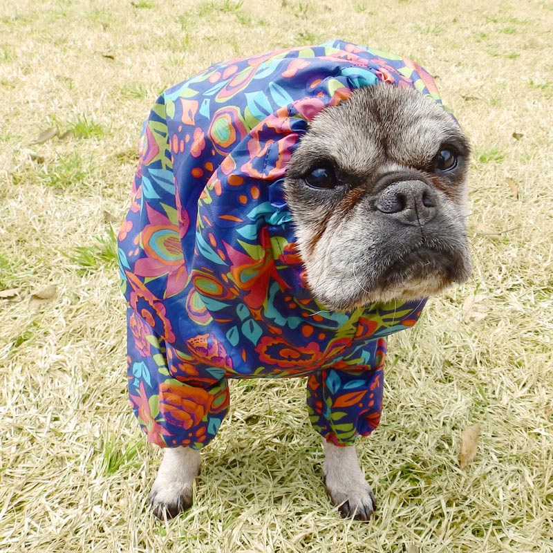 大雨でのお散歩には不向きだけど、小雨お散歩にはピッタリの着脱ラクチンレインコートです。