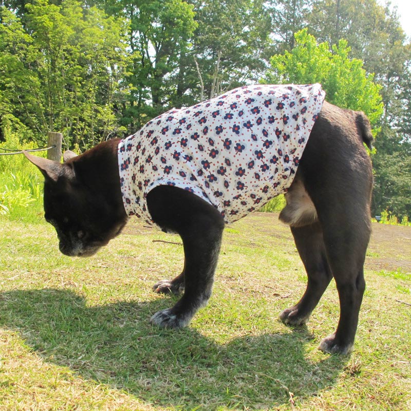 下記目安サイズとモデル犬サイズ・着用画像をご参考ください。