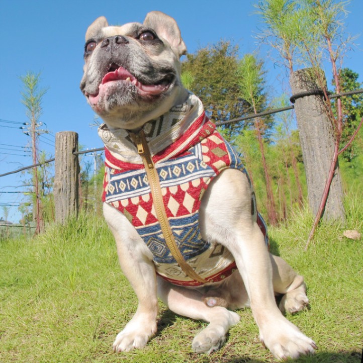下記目安サイズとモデル犬サイズ・着用画像をご参考ください。