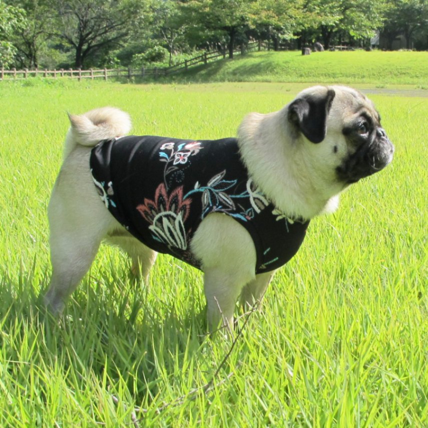下記目安サイズとモデル犬サイズ・着用画像をご参考ください。