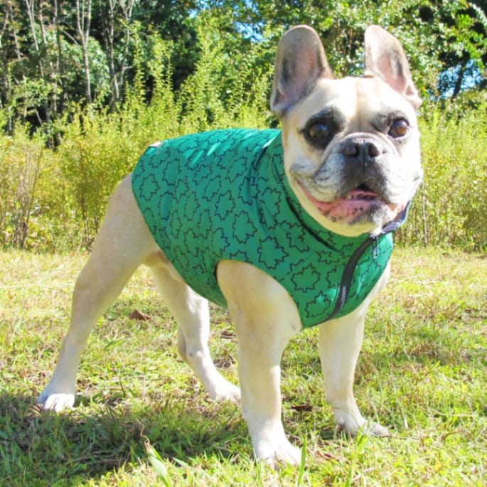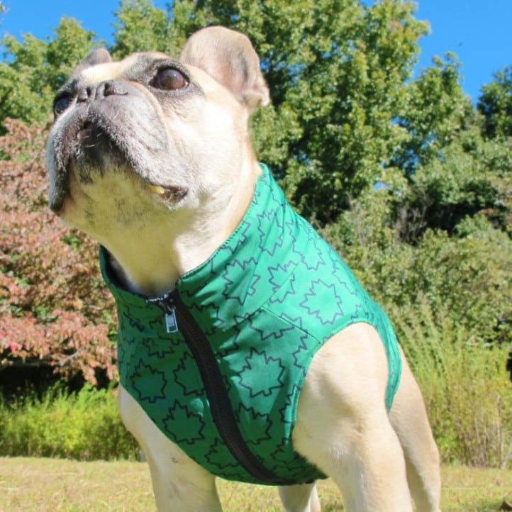 毛色問わずステキに映える外国感のあるグリーンに、ネイビーのメイプルリーフプリント♥