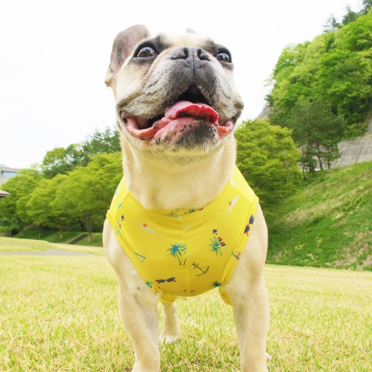 水に入ってもすぐ乾くからと水着兼用で着用してくれているワンコちゃんもいるようです♪