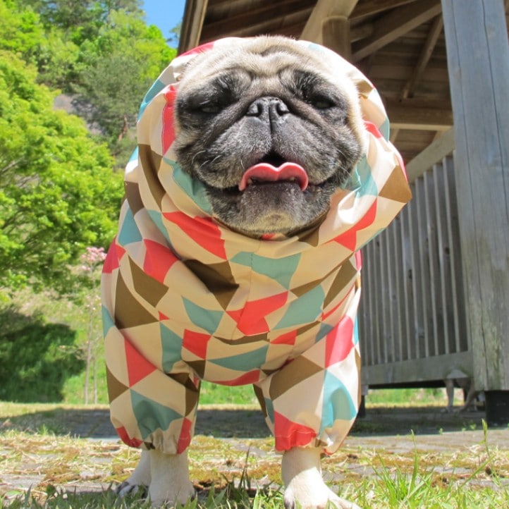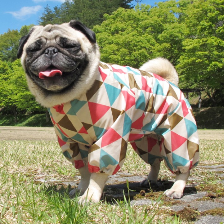 大雨でのお散歩には不向きだけど、小雨お散歩にはピッタリの着脱ラクチンレインコートです。