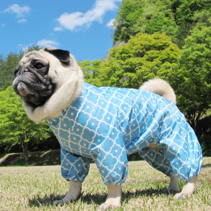 大雨でのお散歩には不向きだけど、小雨お散歩にはピッタリの着脱ラクチンレインコートです。
