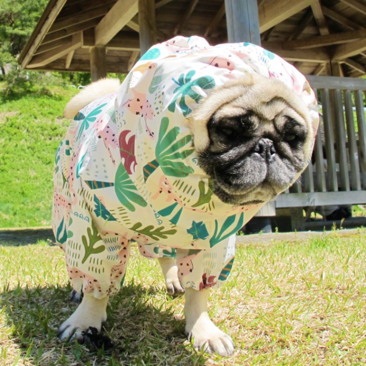 大雨でのお散歩には不向きだけど、小雨お散歩にはピッタリの着脱ラクチンレインコートです。