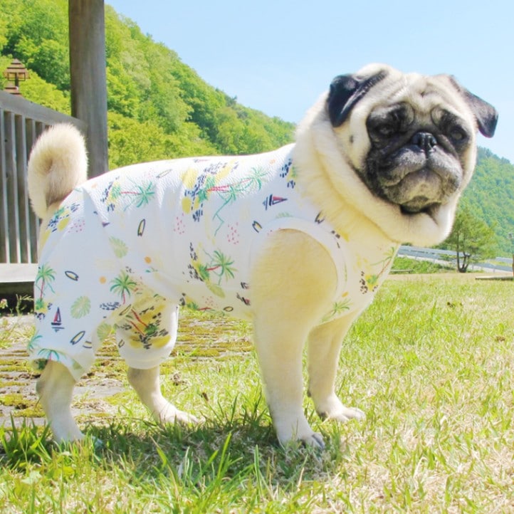 ホワイトベースにヤシの木やヨットなど南国を思わせるプリント♥