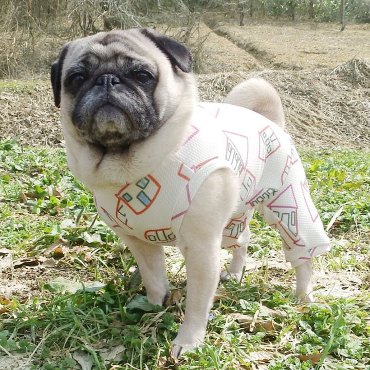 ブルオブルコの商品は、ブヒ達にジャストサイズを着て欲しいと、生地の伸縮率に合わせてサイズを微調整しています。